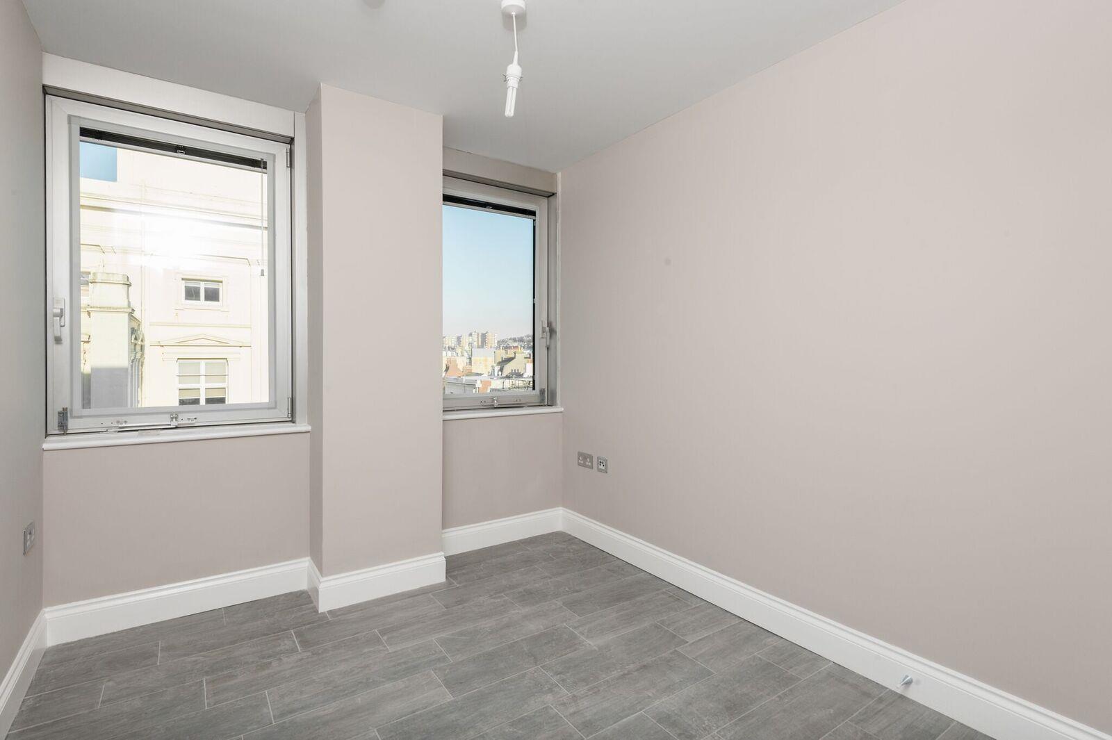 Living room area: intercom door entry system, hardwood flooring, TV aerial point, northly aspect double glazed windows looking out to Bartholomew Square.