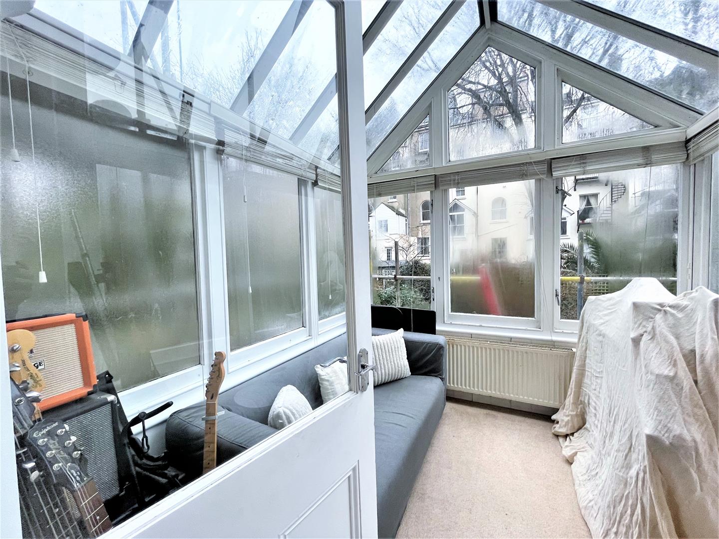 Situated on the top floor of the maisonette, easterly aspect sash window with fitted blind and radiator. Carpet flooring, ceiling downlighter and door to shower room.