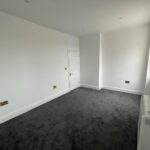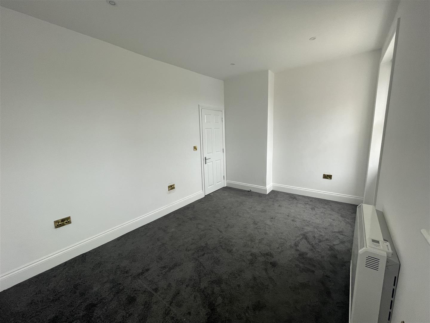 Bedroom one, carpet, radiator, window LED ceiling down lights.