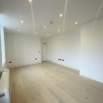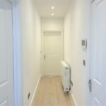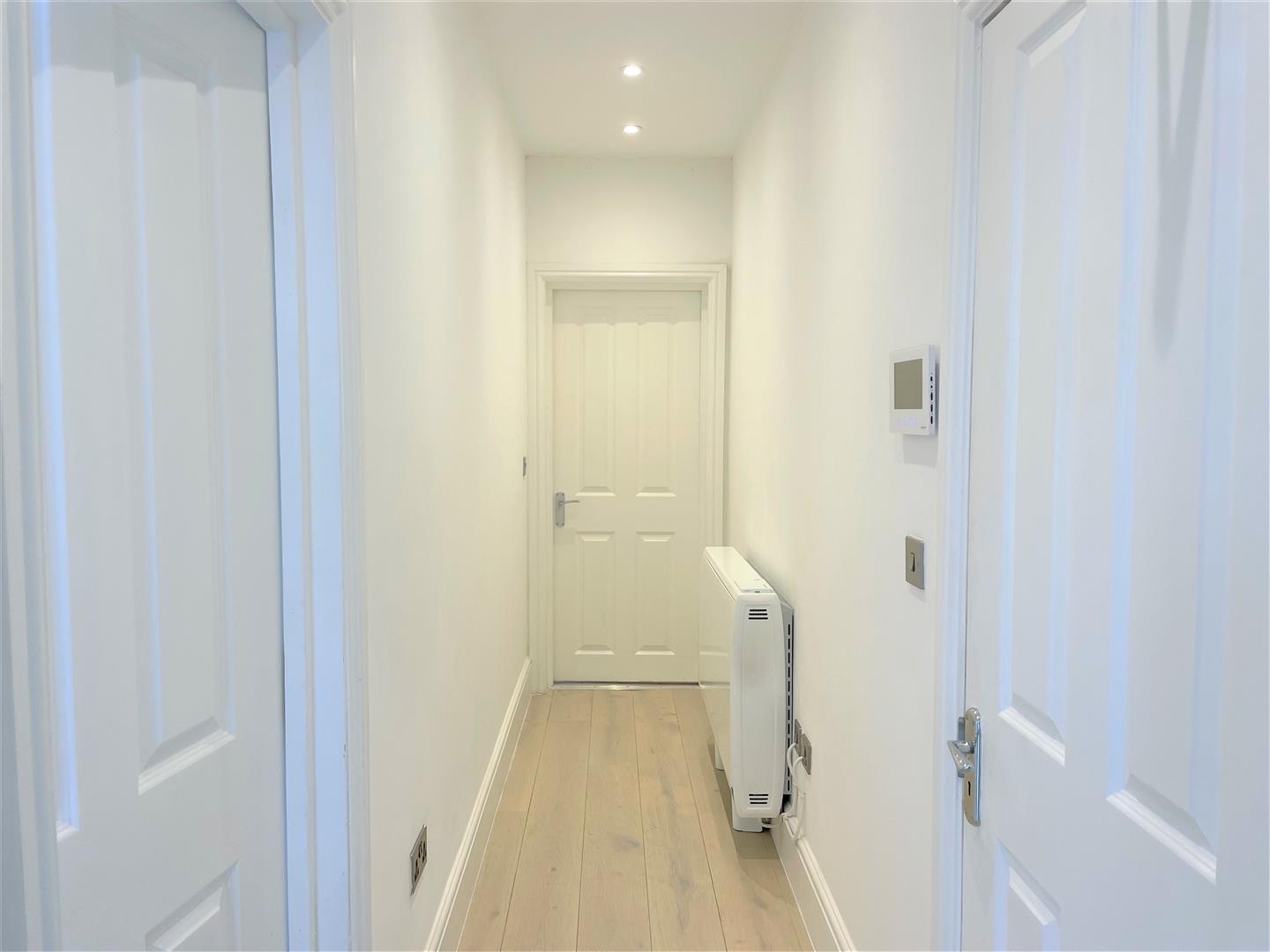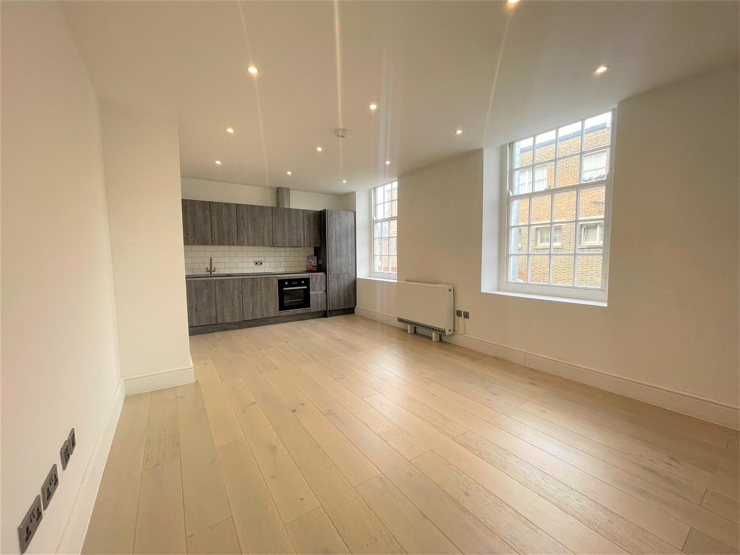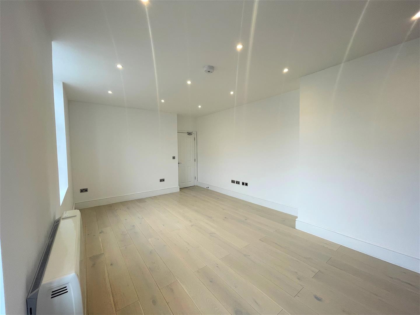 Open plan kitchen living room with integrated kitchen appliances including fridge freezer, washing machine, oven and hob, stainless steel sink and bowl drainer. Hardwood flooring, LED ceiling down lighters, TV aerial point, double glazed Westerly aspect window, radiator.