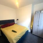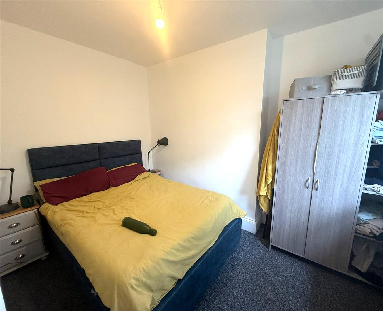 Spacious double bedroom with carpet throughout, radiator, ceiling downlighter and Easterly aspect sash window.