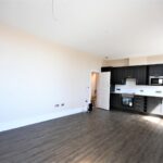 Living area: Laminate flooring, radiator, large height windows with views across the city, tv aerial points and HMDI outlets, LED ceiling downlighters.