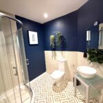 Bespoke bathroom suite comprising bath with shower attachment, w.c, hand wash basin with stainless steel mixer taps, mirror, tiled floor and walls, extractor fan, heated towel rail.